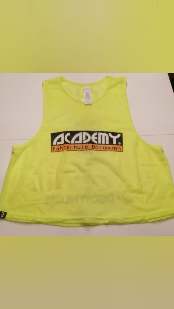 Sie wurden uns freundlicherweise von der ACADEMY – FAHRSCHULE BORNMANN gesponsert und durch die Firma DECATHLON bedruckt.